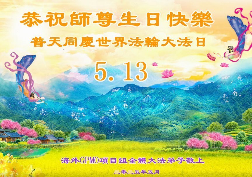 恭祝慈悲偉大的李洪志師尊生日快樂暨法輪大法洪傳33週年!