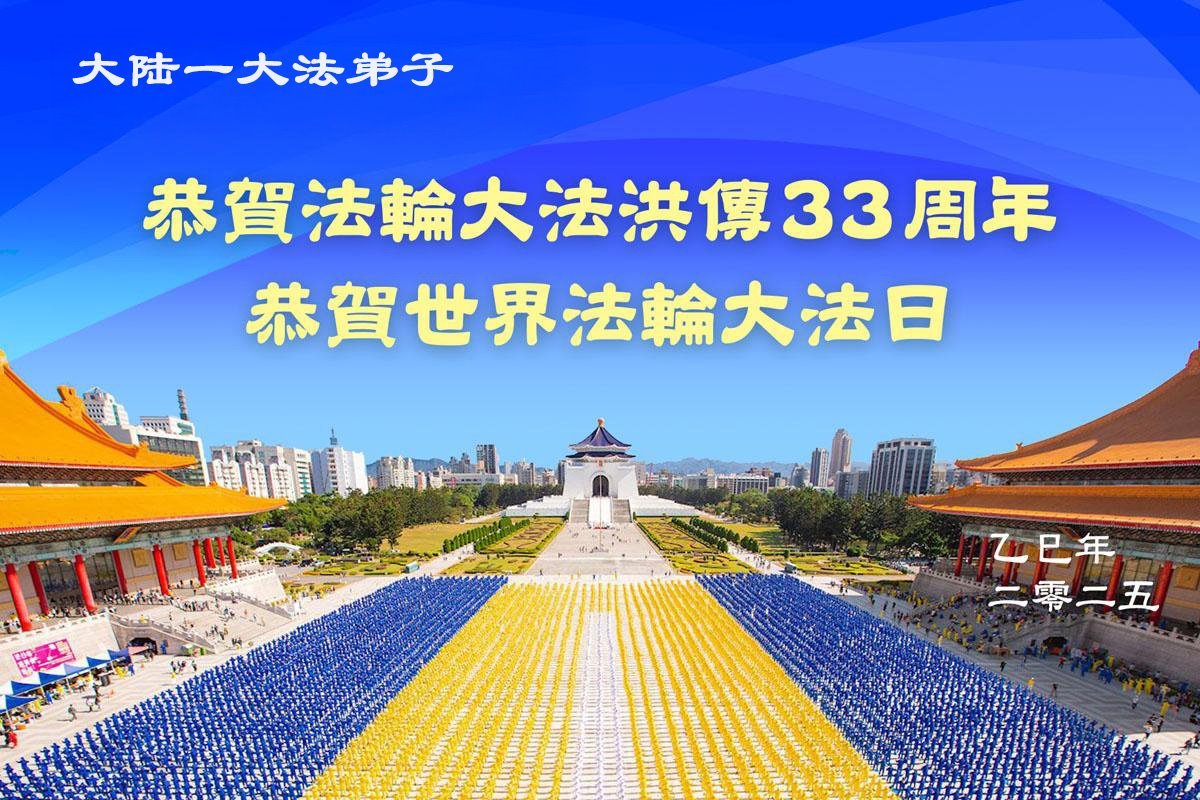 值此世界法輪大法日來臨之際,敬祝慈悲偉大的師尊生日快樂!恭賀法輪大法洪傳33週年!弟子一定精進實修,做好三件事,不辜負師尊和眾生的期盼!
