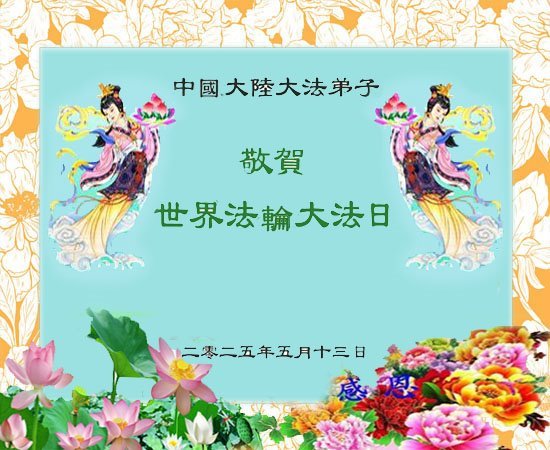 在這個特殊而神聖的日子裏,我們兩位弟子恭祝師尊生日快樂!同賀世界法輪大法日。