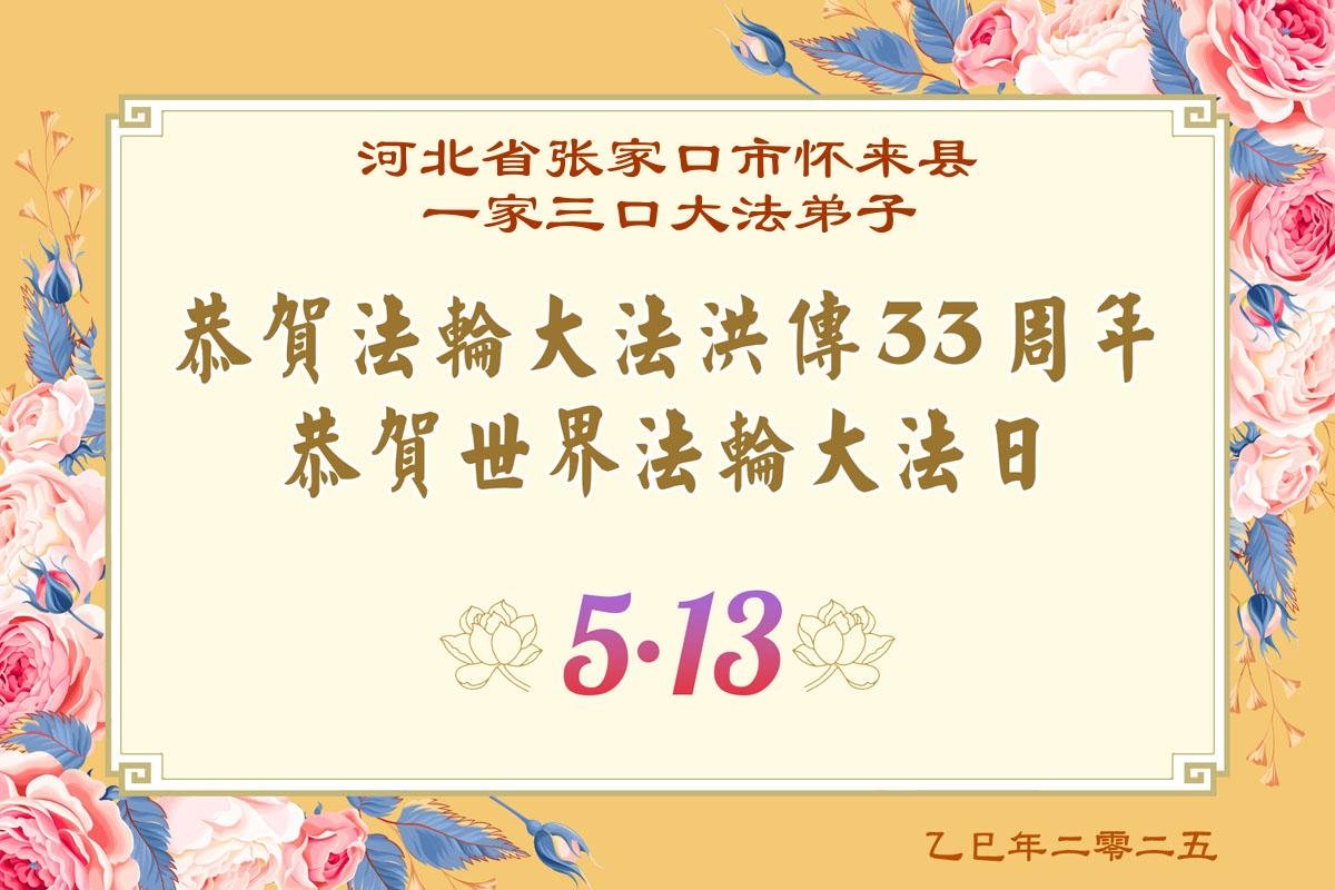 河北省張家口赤城縣明真相眾生全家人敬賀大法師父生日快樂!