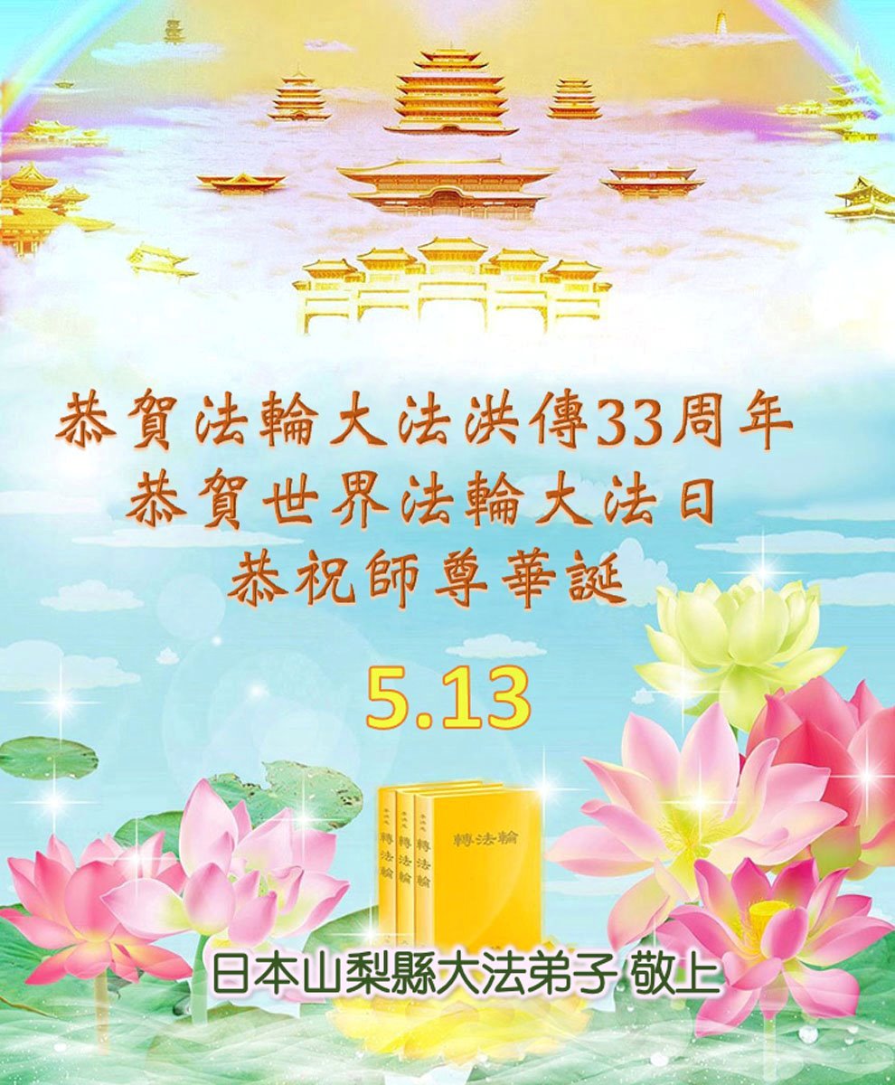日本山梨縣大法弟子恭祝師尊生日快樂!普天同慶世界法輪大法日!