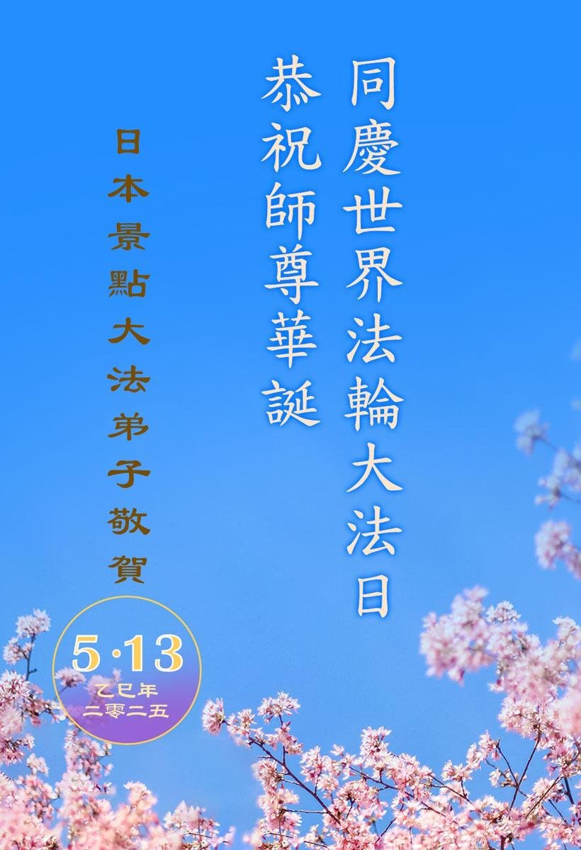 日本景點大法弟子恭賀世界法輪大法日!恭祝師尊華誕!