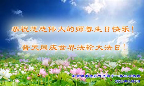 師尊您辛苦了,又到了一年一度的世界法輪大法日,在這普天同慶的日子裏,弟子全家恭祝您生日快樂!