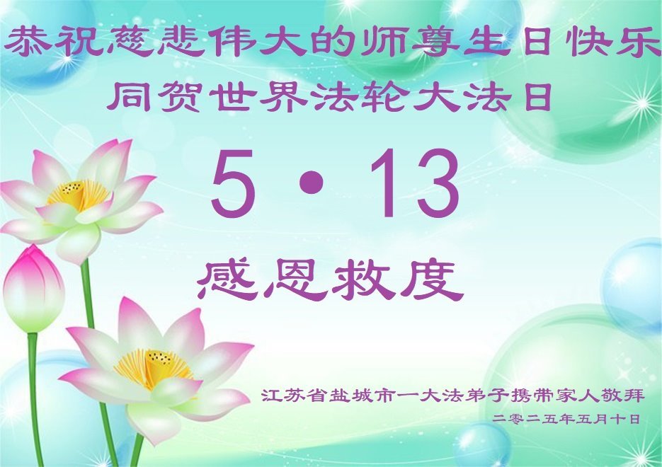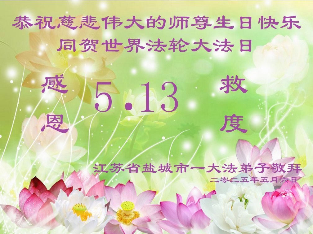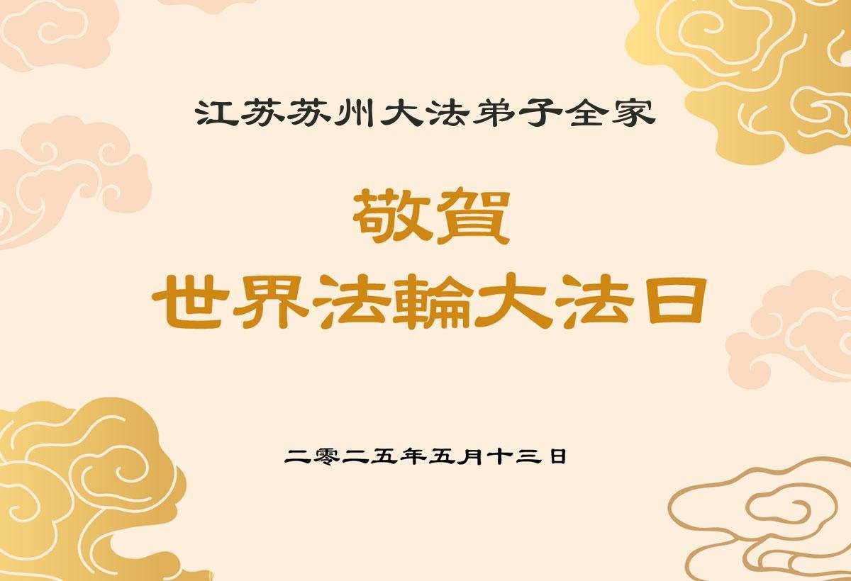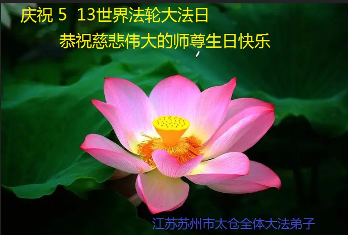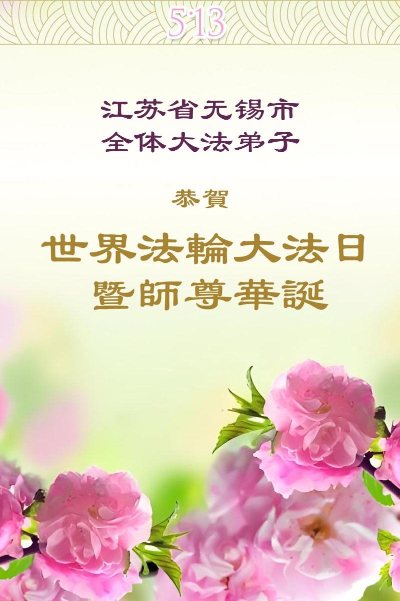 無錫大法弟子恭祝師尊生日快樂!普天同慶世界法輪大法日!我們一定牢記師尊的教誨,放下一切人心、執著,珍惜這萬古機緣,精進實修,努力學好法,做好三件事,緊跟師尊的正法進程,多救人。