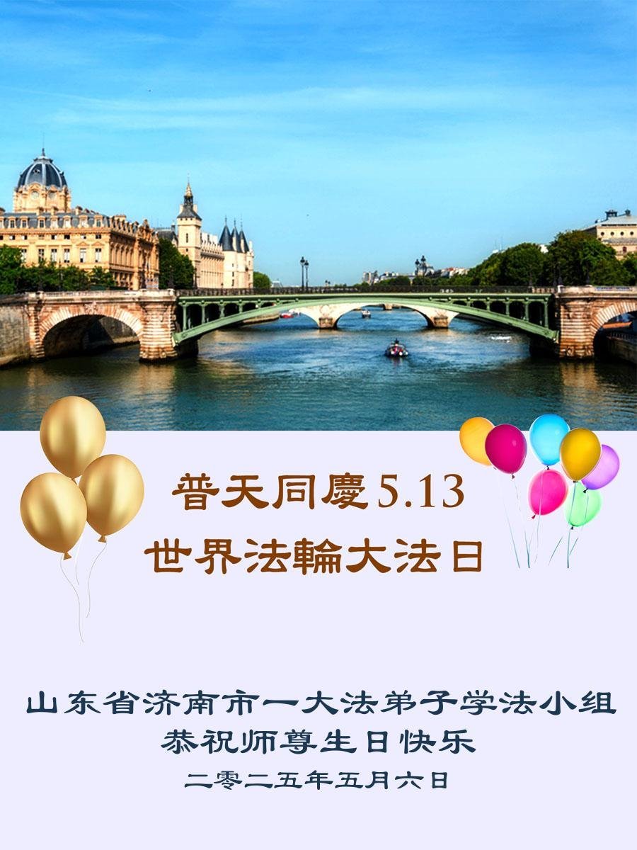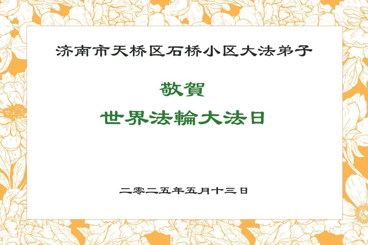 山東省濟南大法弟子恭祝師尊華誕!敬賀世界法輪大法日!