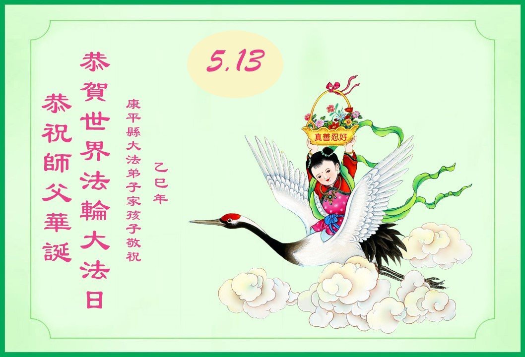 遼寧瀋陽市一大法弟子家孩子恭賀世界法輪大法日!