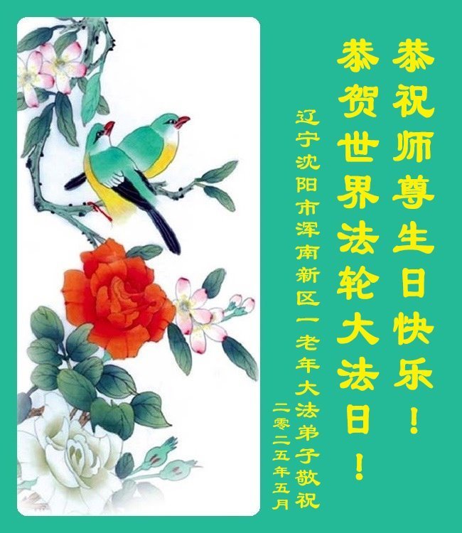 遼寧省瀋陽市渾南新區一老年大法弟子恭賀世界法輪大法日!敬祝慈悲偉大的師尊生日快樂!