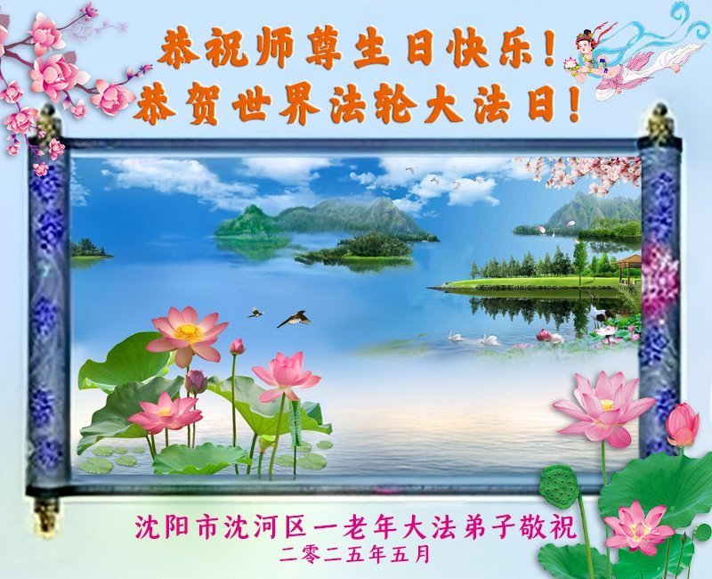 遼寧省瀋陽市沈河區一老年大法弟子恭賀世界法輪大法日!恭祝師尊生日快樂!