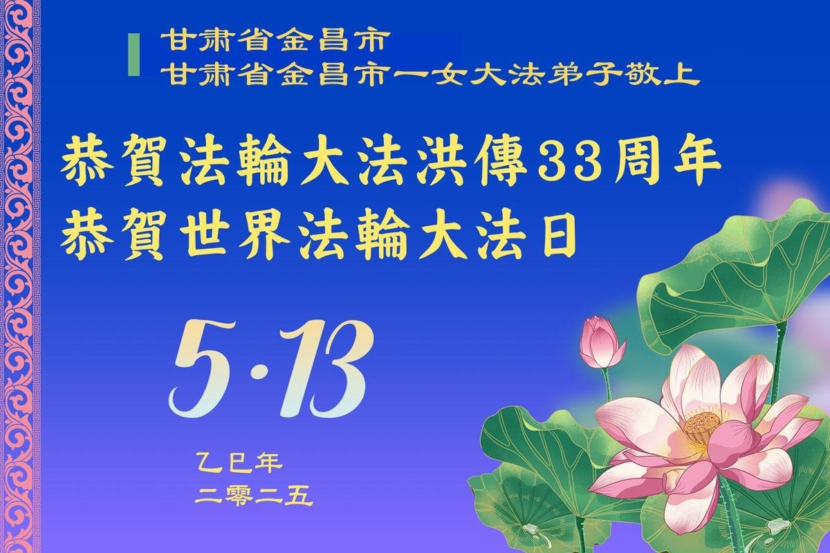 甘肅省蘭州市一大法弟子恭賀世界法輪大法日!恭祝師尊華誕!