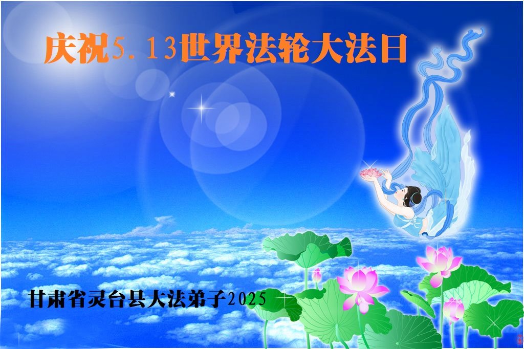 甘肅省平涼市靈台縣大法弟子慶祝世界法輪大法日!