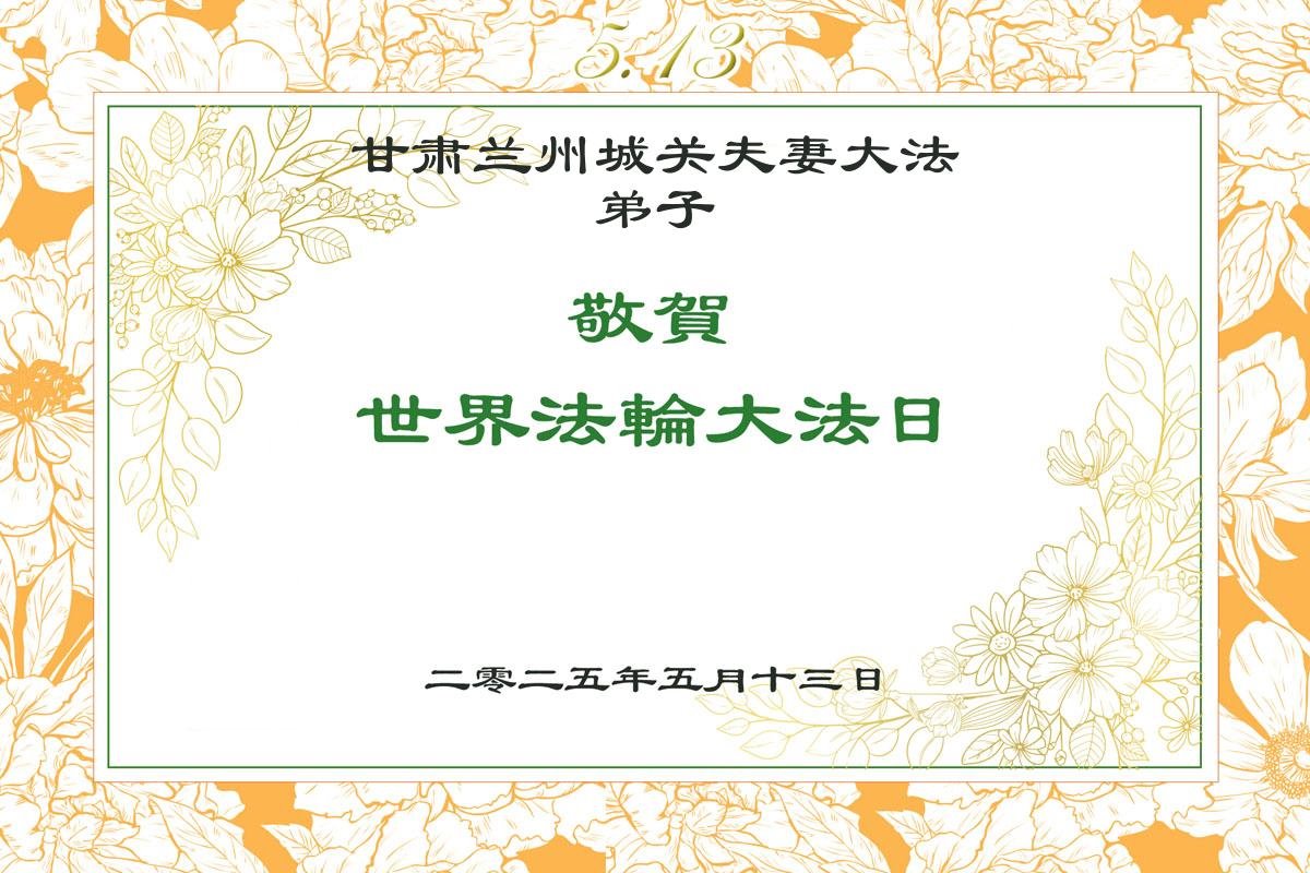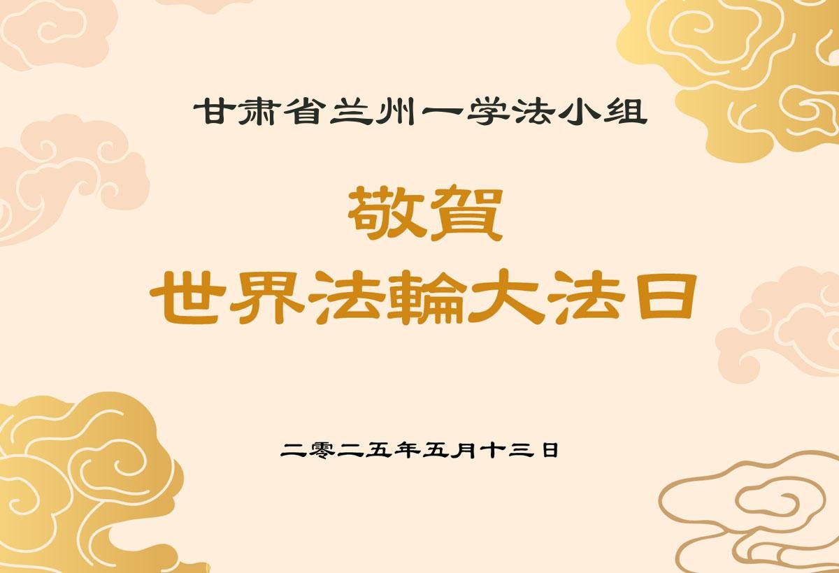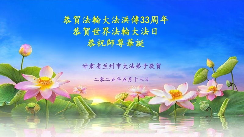 甘肅省蘭州市一學法小組大法弟子敬賀法輪大法日!恭祝師尊生日快樂!感恩師父慈悲苦度!同慶法輪大法傳世三十三週年!