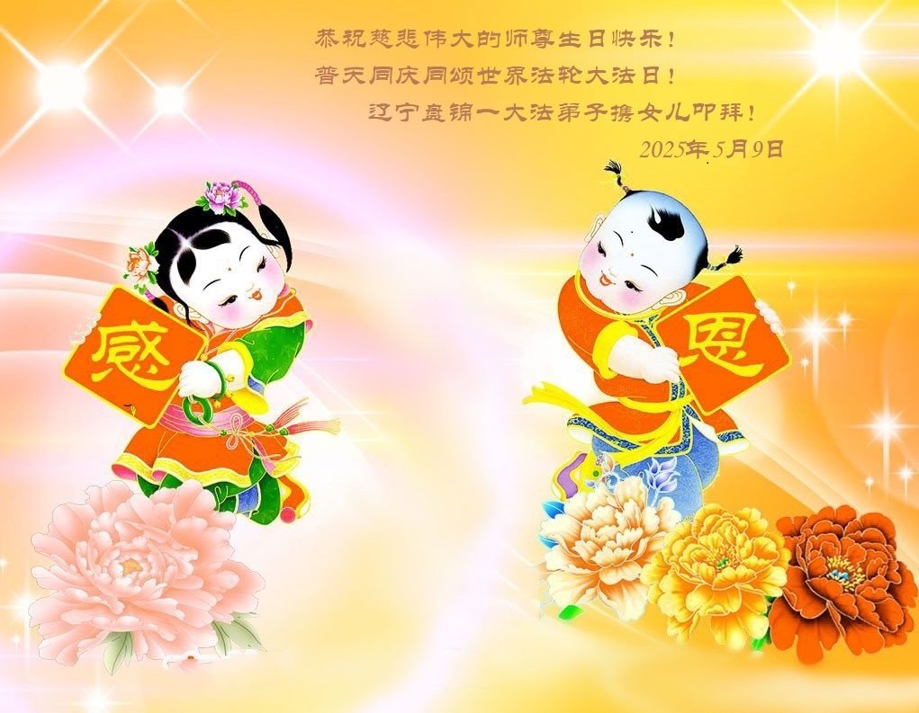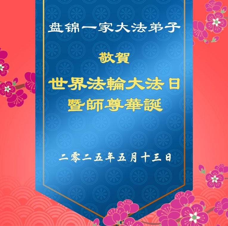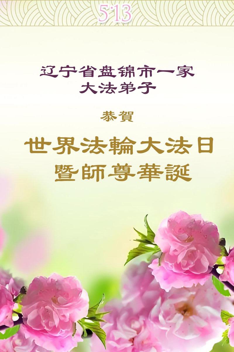 遼寧省盤錦一家大法弟子恭祝師尊生日快樂!恭賀世界法輪大法日!