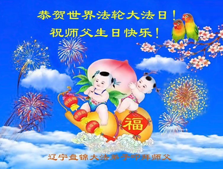 遼寧省盤錦市雙台子區大法弟子慶賀世界法輪大法日!恭祝師父生日快樂!