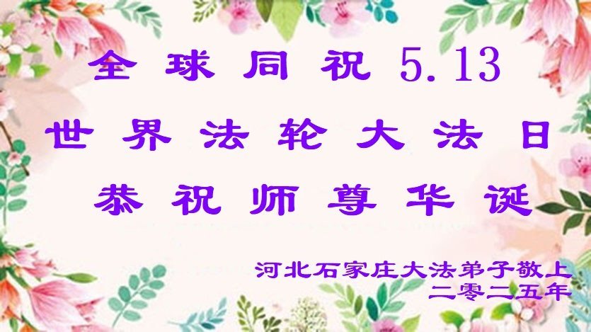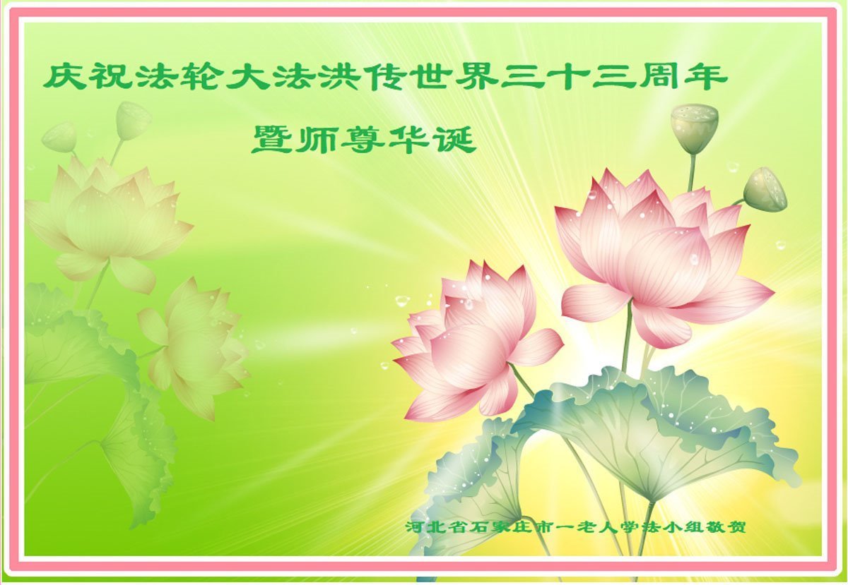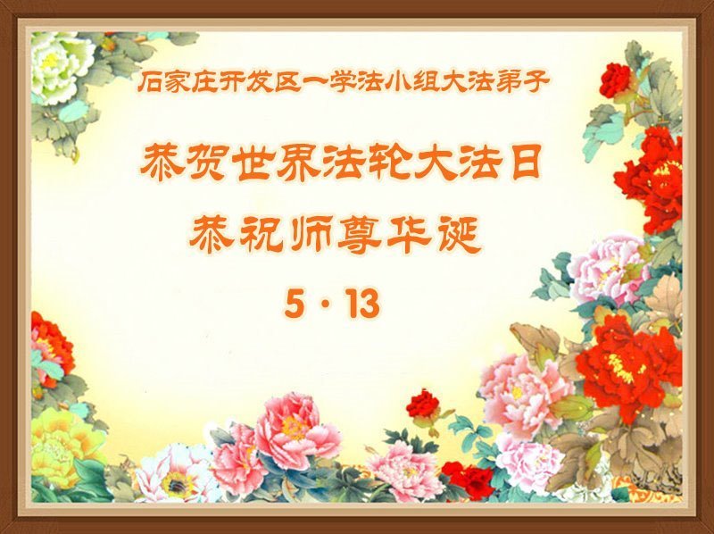 恭賀法輪大法洪傳世界三十三週年暨師尊華誕!雖然我們都是老年人,最大的90多歲,還有80多歲的,七十多歲的,將近七十歲的大法弟子,但是我們天天都走出去救人,在偉大師尊的慈悲救度和保護下平穩的做著救人的事情。以後我們更要走好師尊安排的修煉道路,更加努力的做好三件事,多學法,學好法,多救人,兌現來世的誓約,完成自己的使命,不辜負師尊對我們的期望!再次恭祝慈悲偉大的師尊生日快樂!