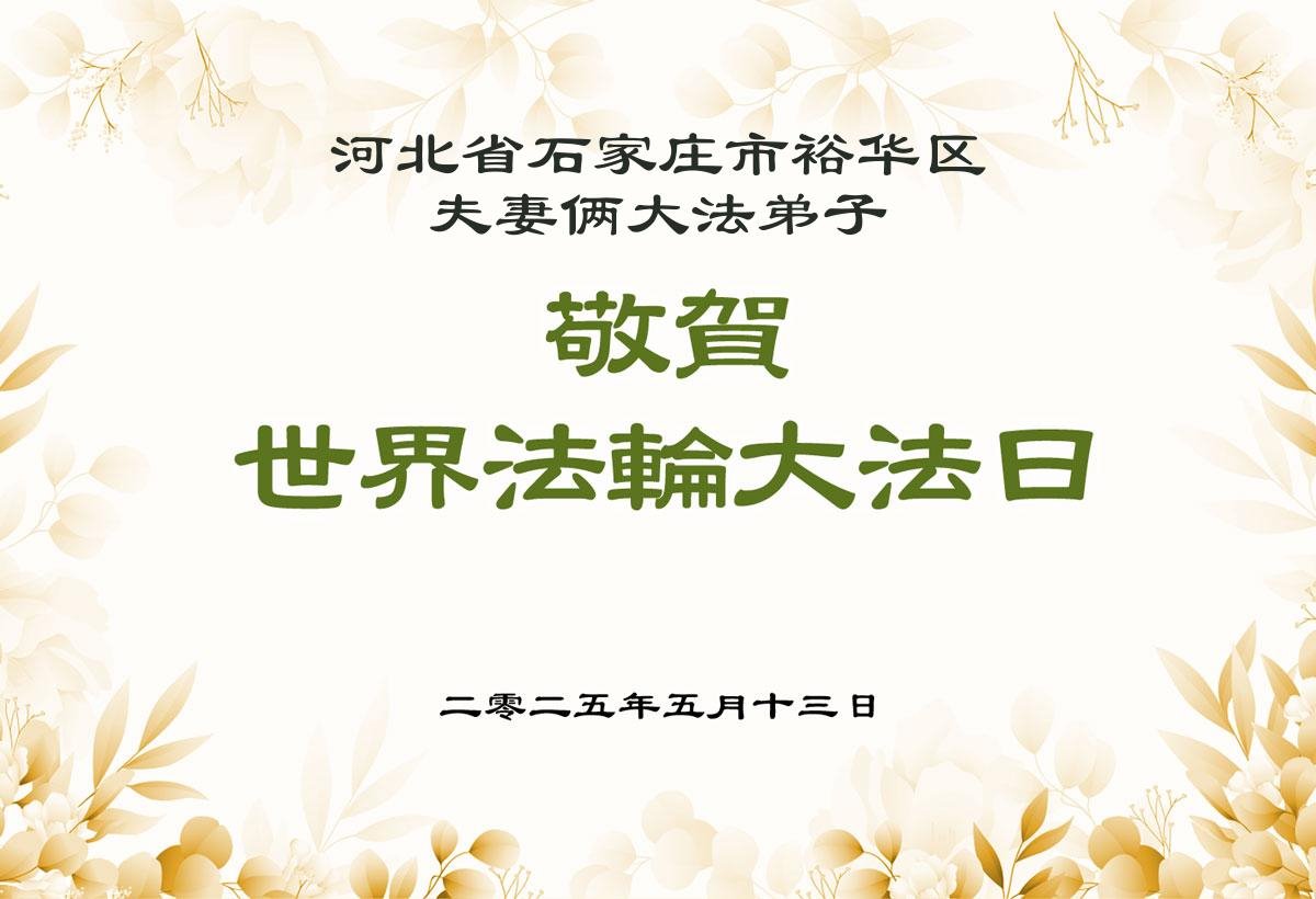 河北省石家莊市晉州大法弟子同慶5.13世界法輪大法日!
