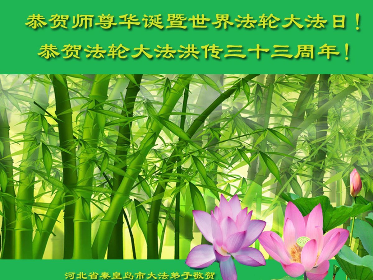 河北省秦皇島市大法弟子恭賀世界法輪大法日暨師尊華誕!