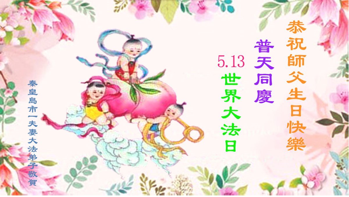 河北秦皇島市一夫妻大法弟子恭賀世界法輪大法日暨師尊華誕!