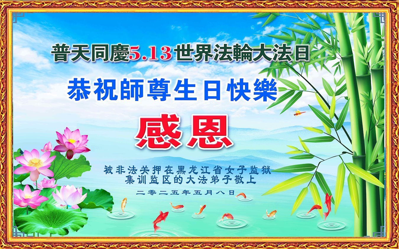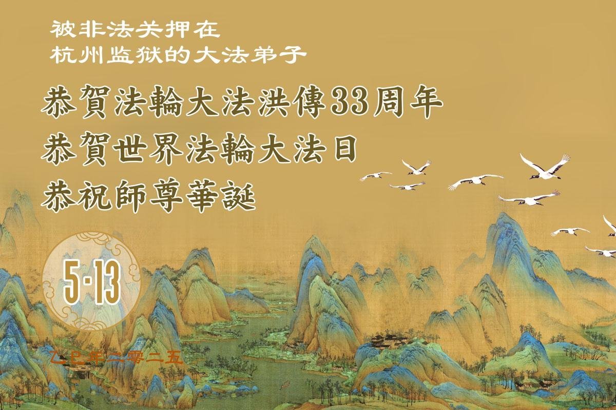 弟子剛被非法關押從魔窟出來不久,製作圖片的工具電腦也沒有了,技巧也忘了,所以賀卡搞得不好,都在慢慢地學習恢復。只有對大法的正信正念沒變!恭賀世界法輪大法日暨師尊華誕!