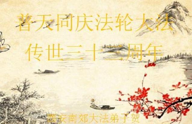 陝西省西安南郊大法弟子慶法輪大法傳世三十三週年!