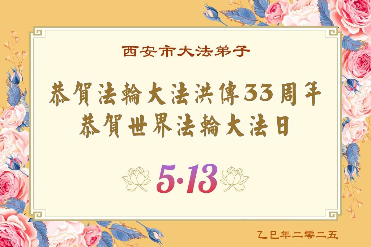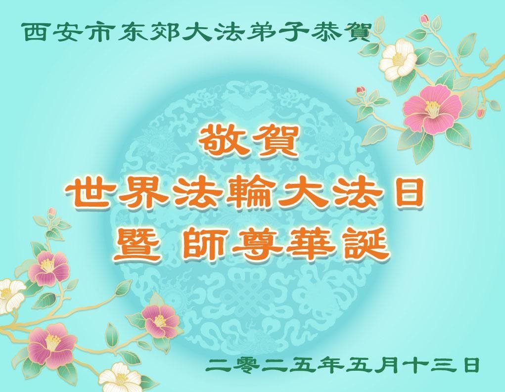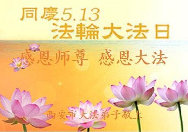 陝西省西安大法弟子的家人慶賀世界法輪大法日!