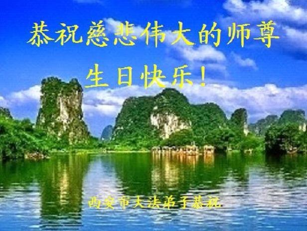 陝西省西安市大法弟子恭祝慈悲偉大的師尊生日快樂!