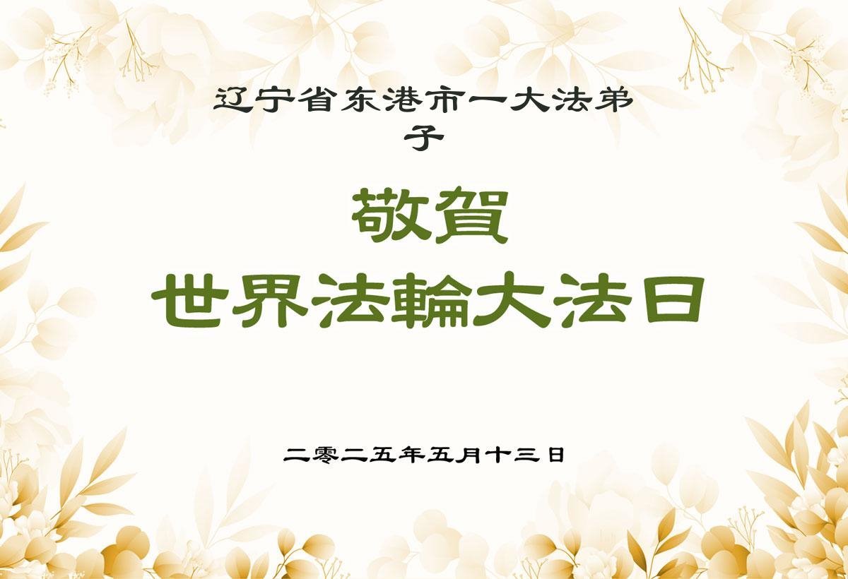 遼寧省丹東市東港市一大法弟子恭祝世界法輪大法日!