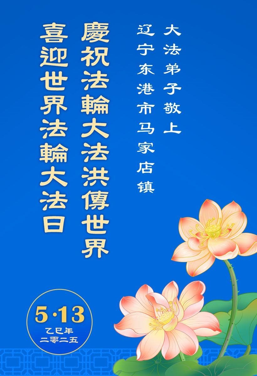 遼寧省丹東市東港市馬家店鎮恭賀世界法輪大法日!