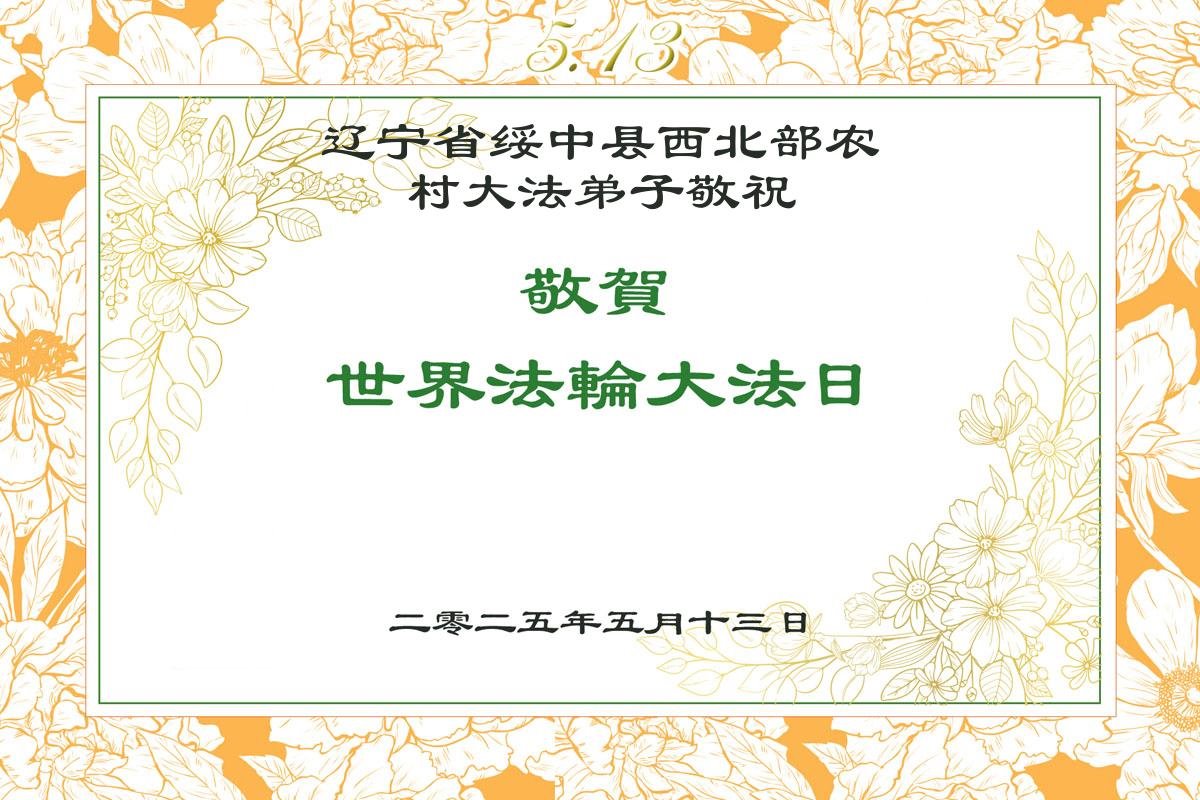 我們遼寧撫順清原縣一個鄉村小鎮所有大法弟子在 5∙13世界法輪大法日來臨之時,恭祝師尊生日快樂!