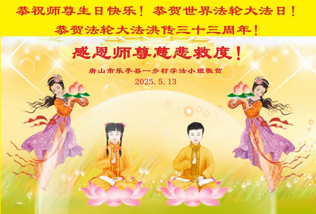 河北樂亭縣一學法小組弟子恭賀世界法輪大法日!恭祝師尊生日快樂!感恩師尊慈悲救度!跪拜師尊!