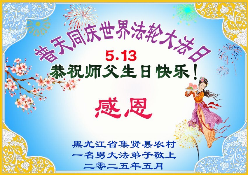 今年是師尊洪傳法輪大法33週年,我們作為農村大法弟子,發自內心的感謝師尊的慈悲救度!師尊您辛苦了!恭祝師尊生日快樂!法輪大法好,真善忍好!