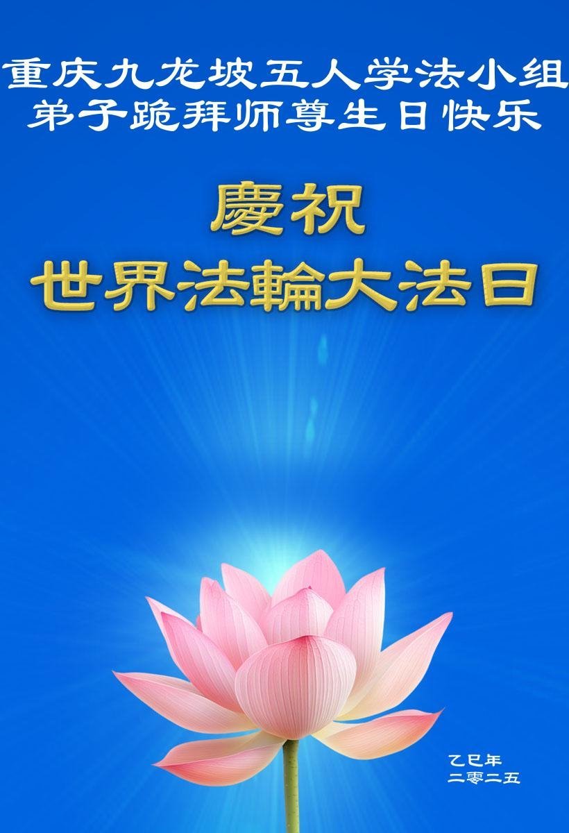 重慶九龍坡區五人學法小組大法弟子恭祝師尊生日快樂!恭賀世界法輪大法日!
