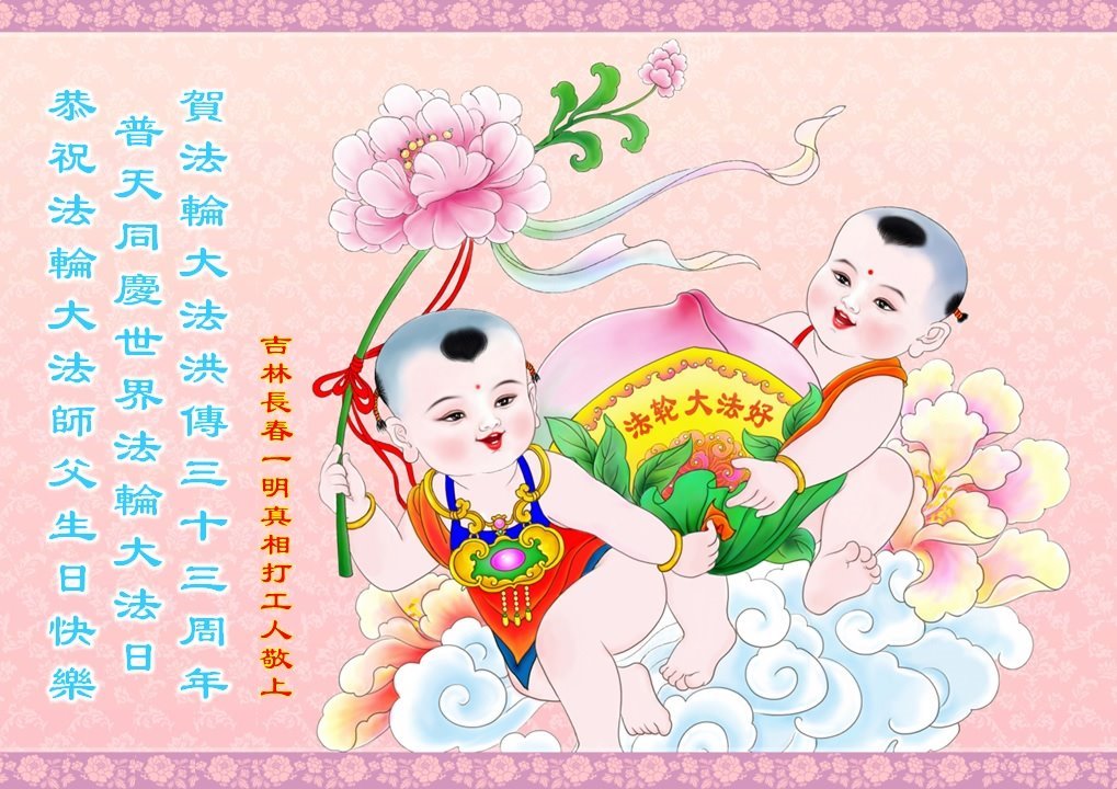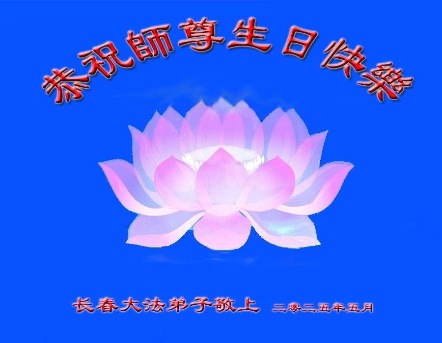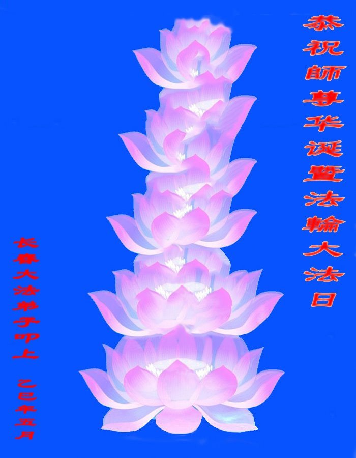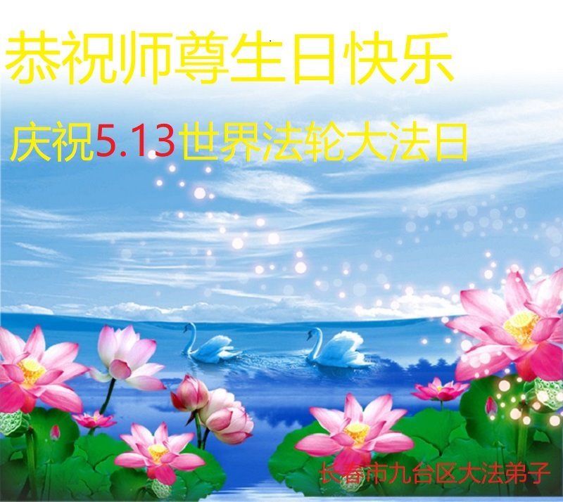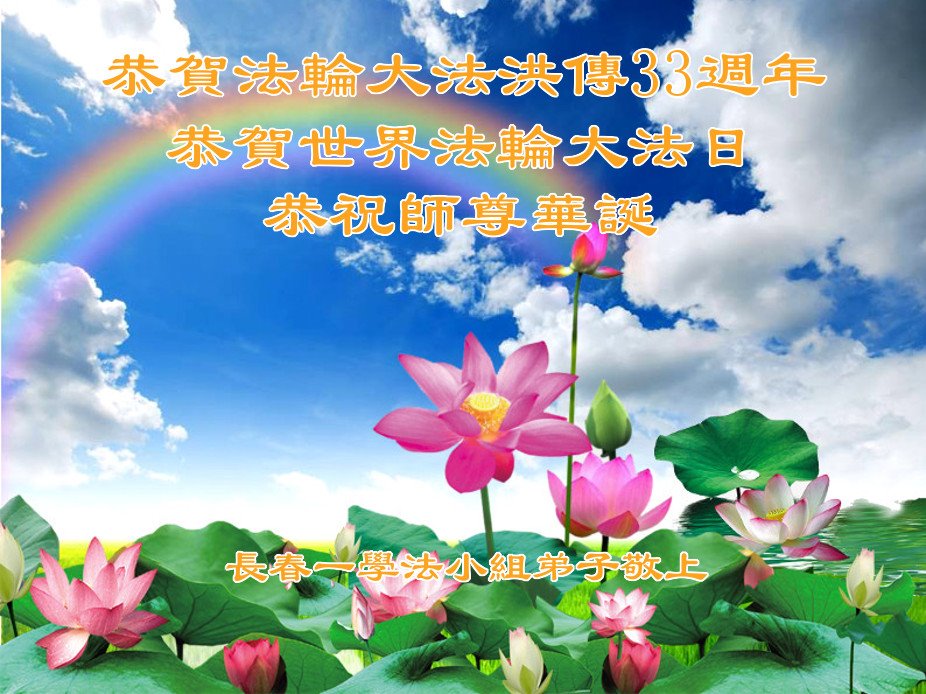 吉林省長春市大法弟子恭祝慈悲偉大的師父生日快樂!恭賀世界法輪大法日!恭賀法輪大法洪傳三十三週年!