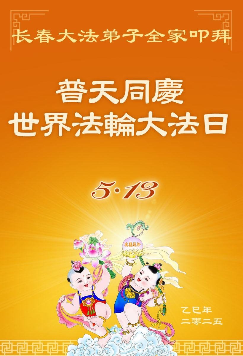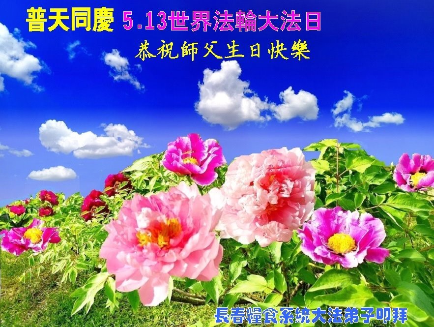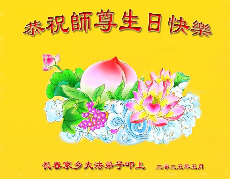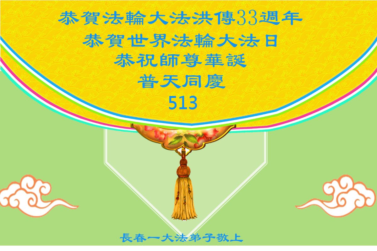吉林省長春市大法弟子恭祝慈悲偉大的師父生日快樂!恭賀世界法輪大法日!恭賀法輪大法洪傳三十三週年!