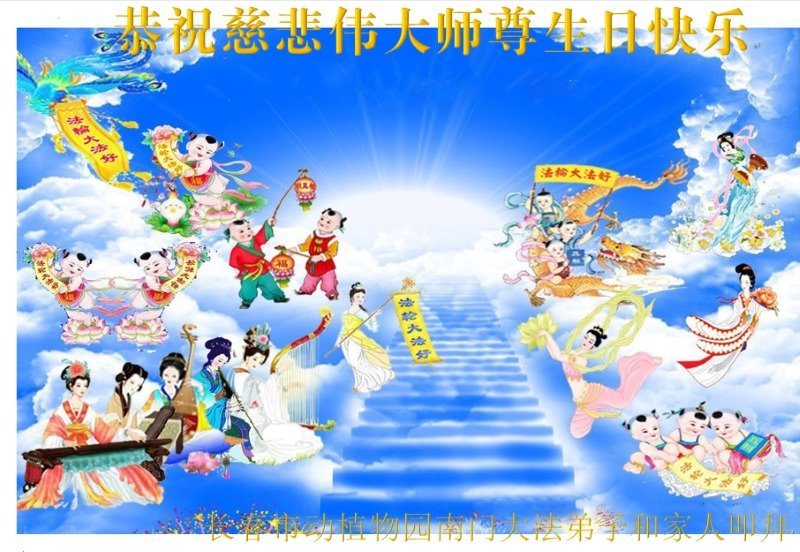 吉林省長春市大法弟子恭祝慈悲偉大的師父生日快樂!普天同慶世界法輪大法日!恭賀法輪大法洪傳三十三週年!