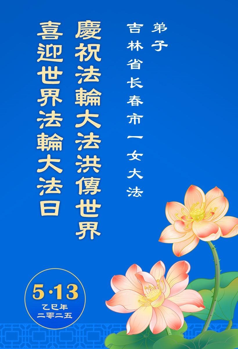 吉林長春大法弟子敬賀世界法輪大法日!感恩師尊慈悲救度!