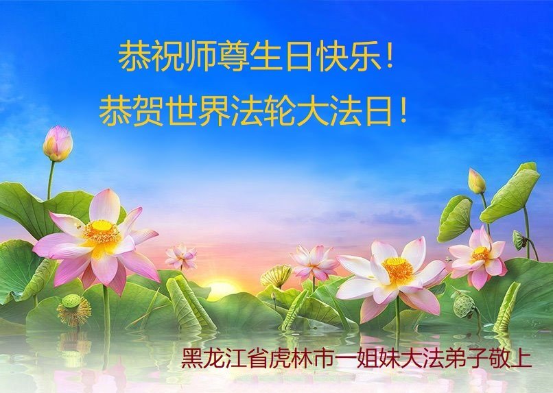 黑龍江省雞西市虎林市一大法弟子恭祝師尊生日快樂!歡慶世界法輪大法日!