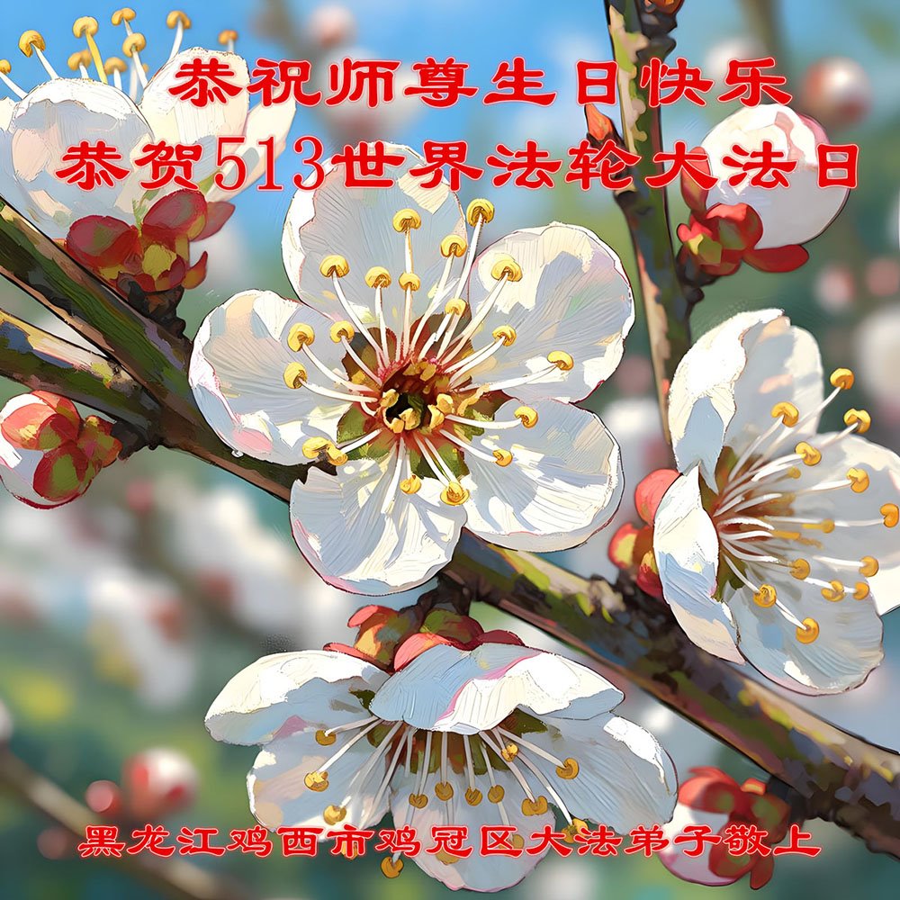 黑龍江省雞西市大法弟子恭賀法輪大法日暨師尊華誕!