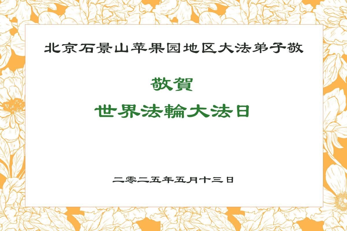 北京石景山蘋果園地區大法弟子恭祝師尊生日快樂!