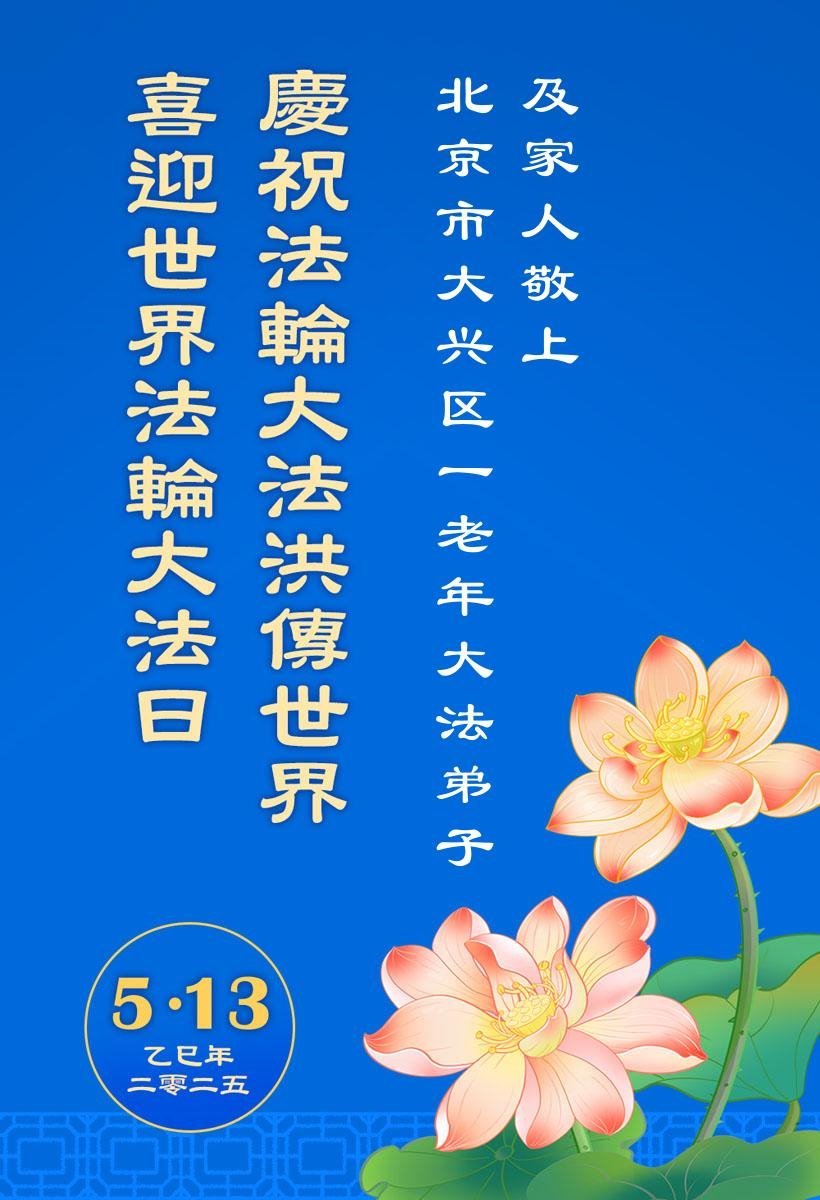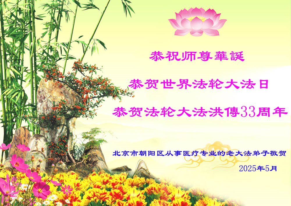 北京市朝陽區從事醫療專業的老大法弟子恭賀法輪大法日!