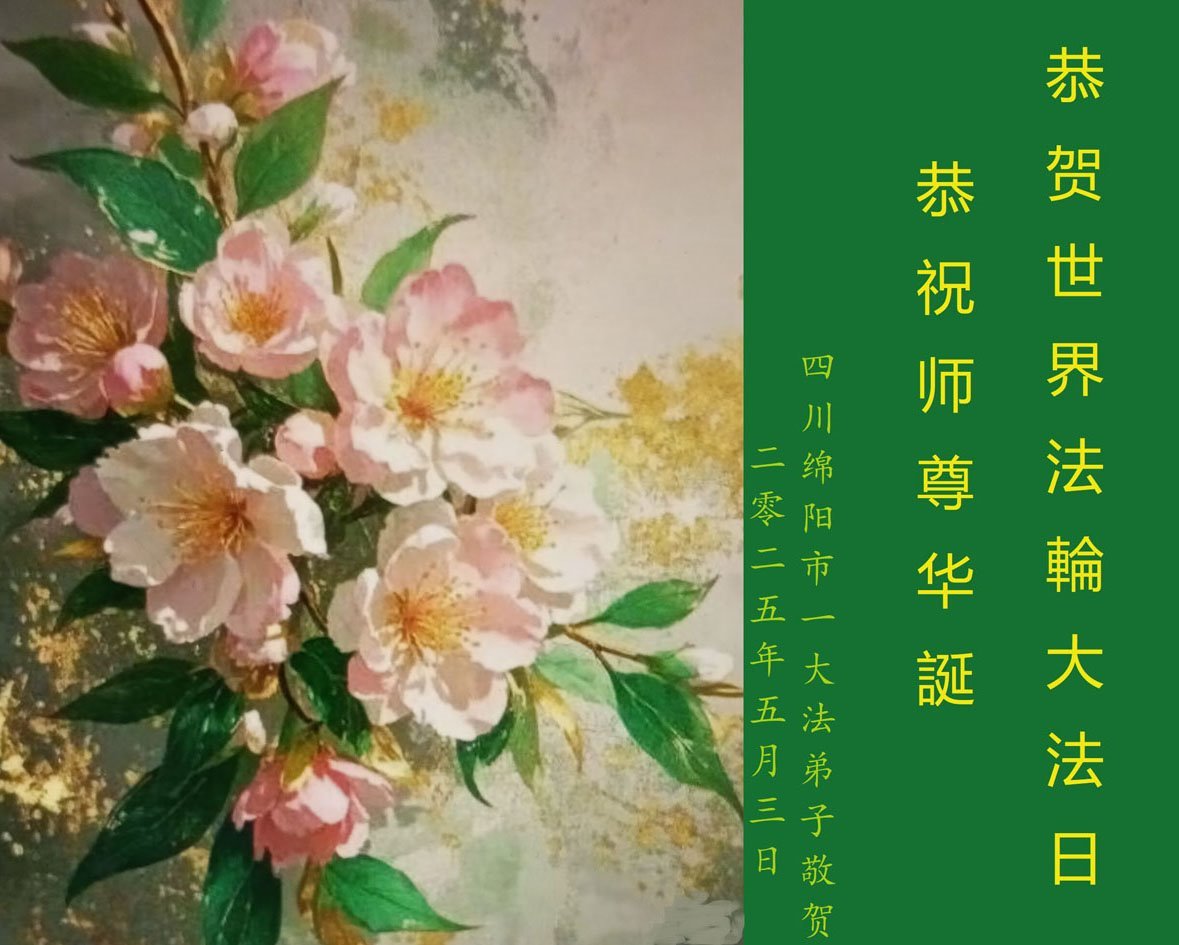 四川綿陽市一大法弟子恭賀世界法輪大法日!恭祝師尊華誕!