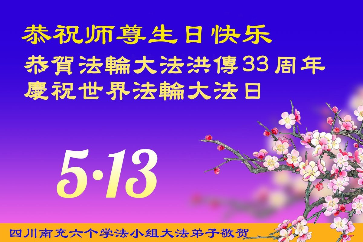 四川南充六個學法小組大法弟子恭賀師尊華誕暨世界法輪大法日!