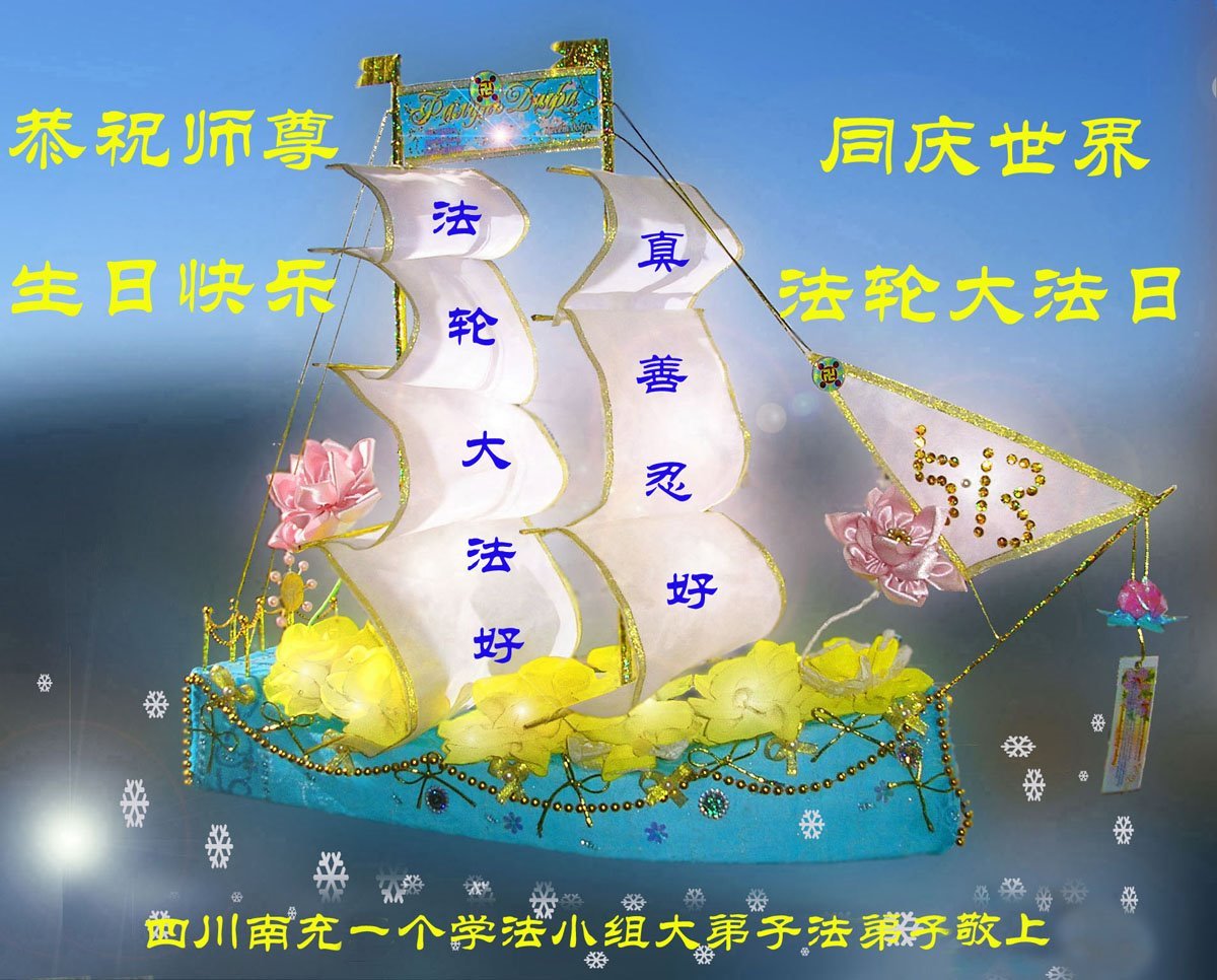 四川南充三個學法小組大法弟子恭賀師尊華誕暨世界法輪大法日!
