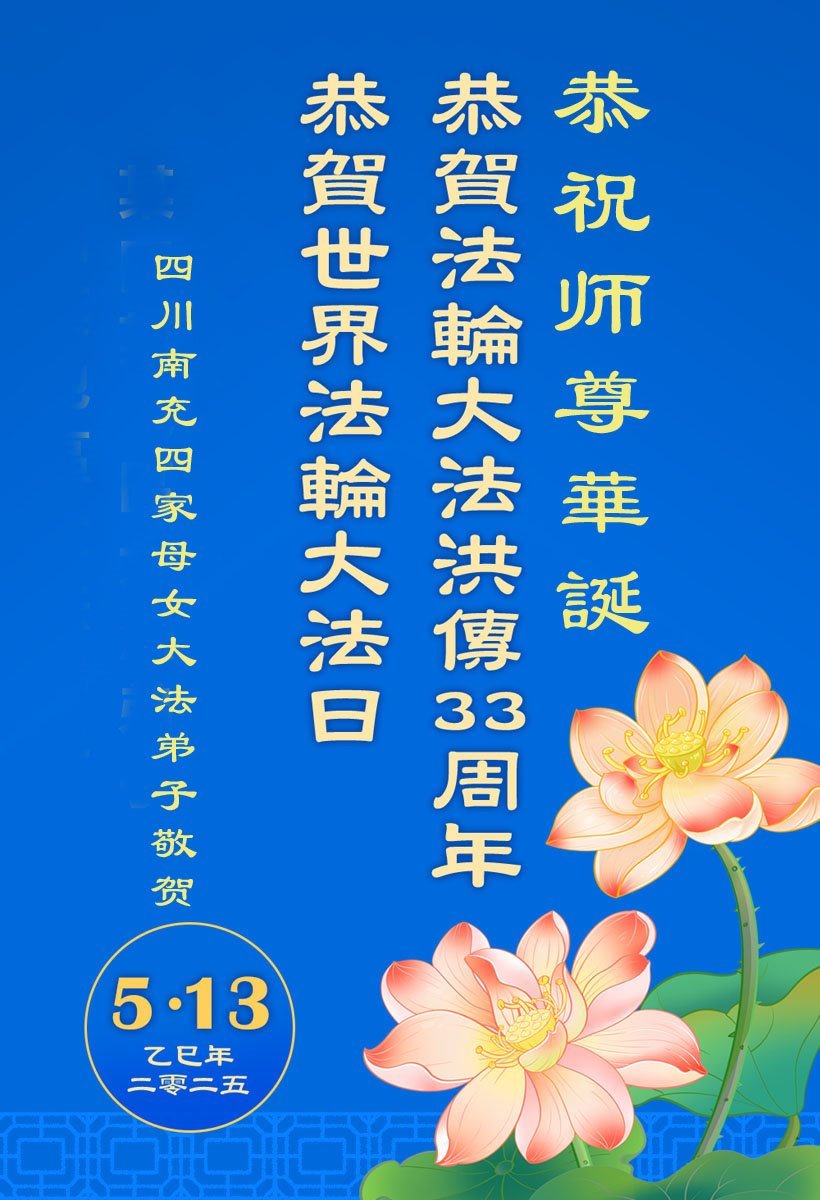 四川南充四家母女大法弟子恭賀師尊華誕暨世界法輪大法日!
