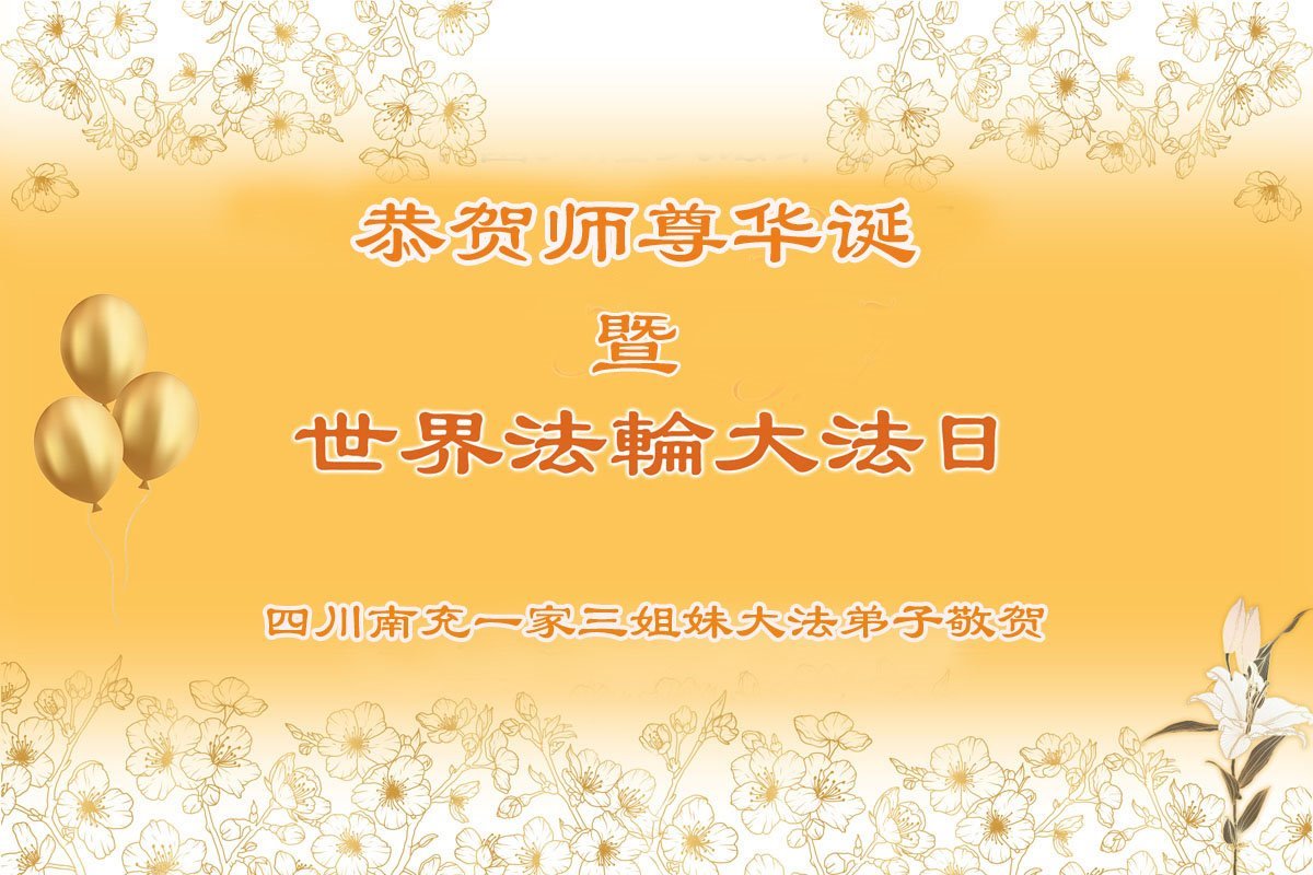 四川南充一家三姐妹大法弟子恭賀師尊華誕暨世界法輪大法日!