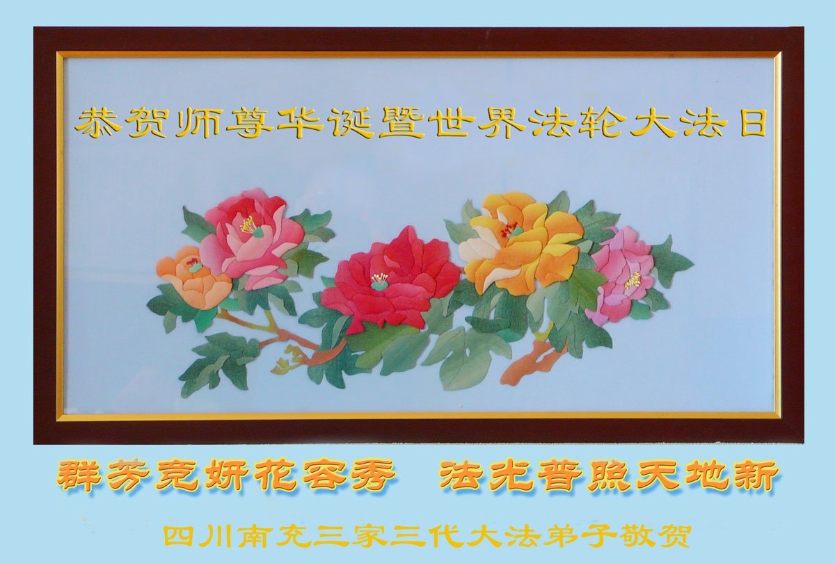 四川南充三家三代大法弟子恭賀師尊華誕暨世界法輪大法日!