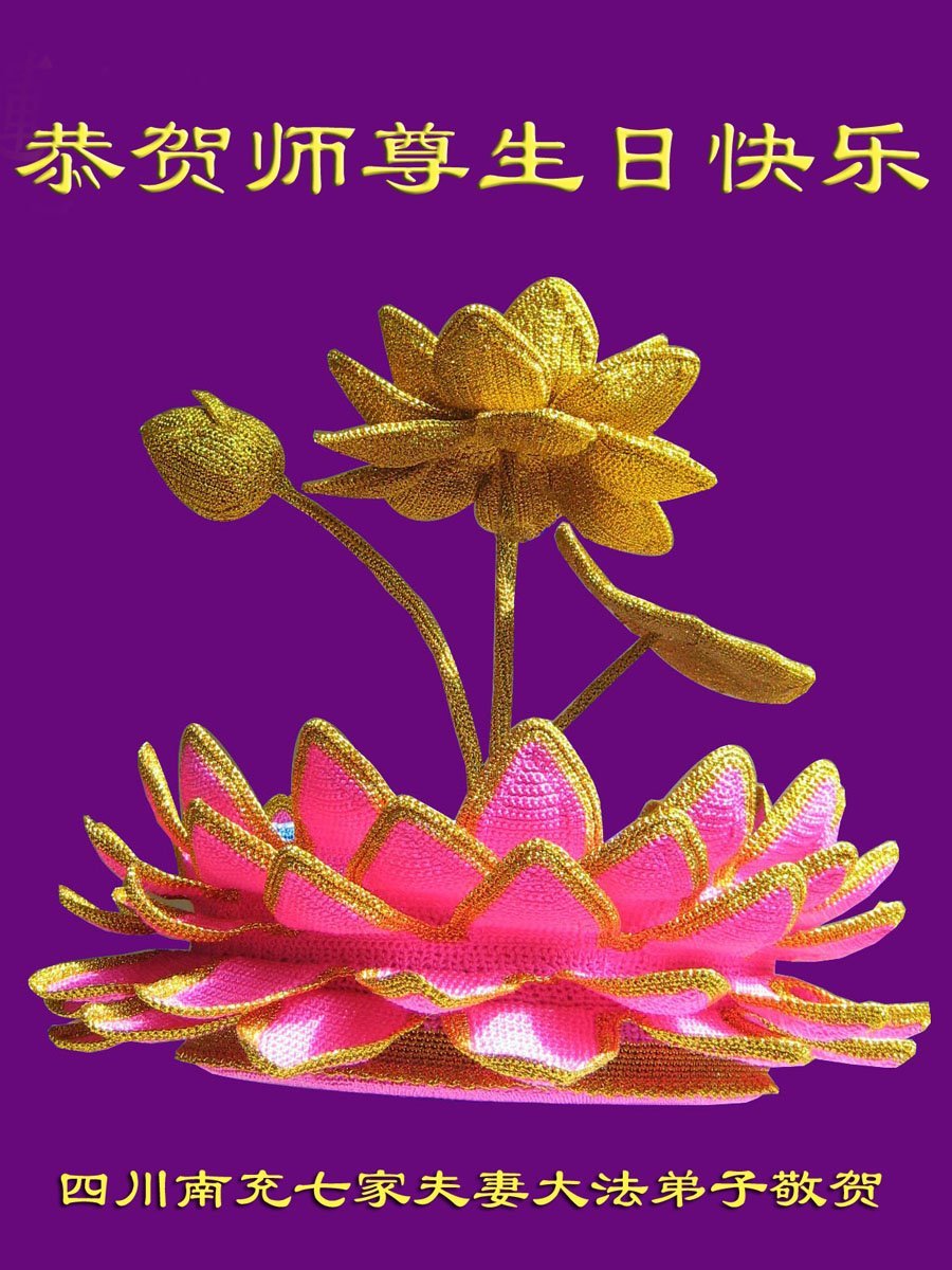 四川南充七家夫妻大法弟子恭賀師尊華誕暨世界法輪大法日!