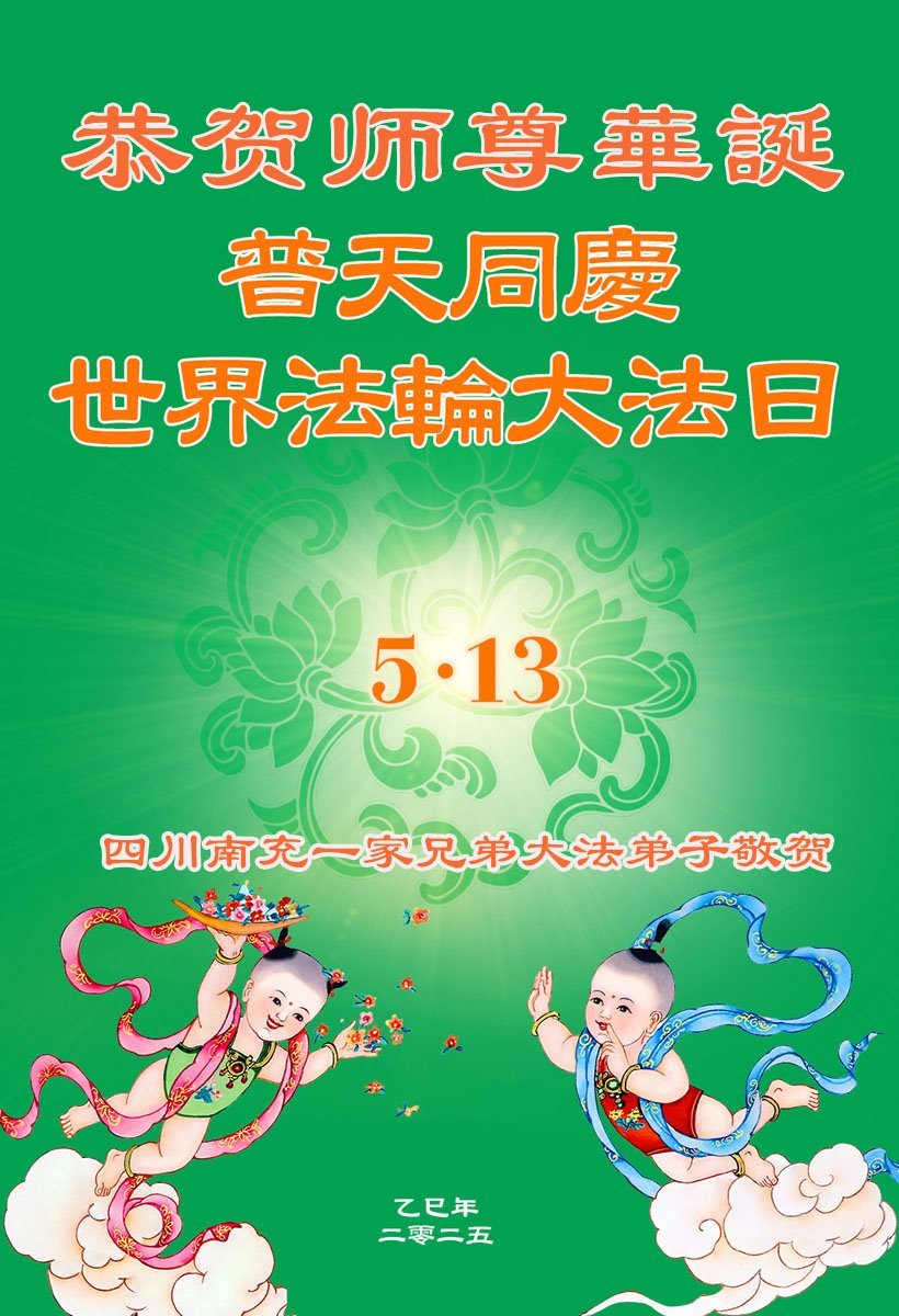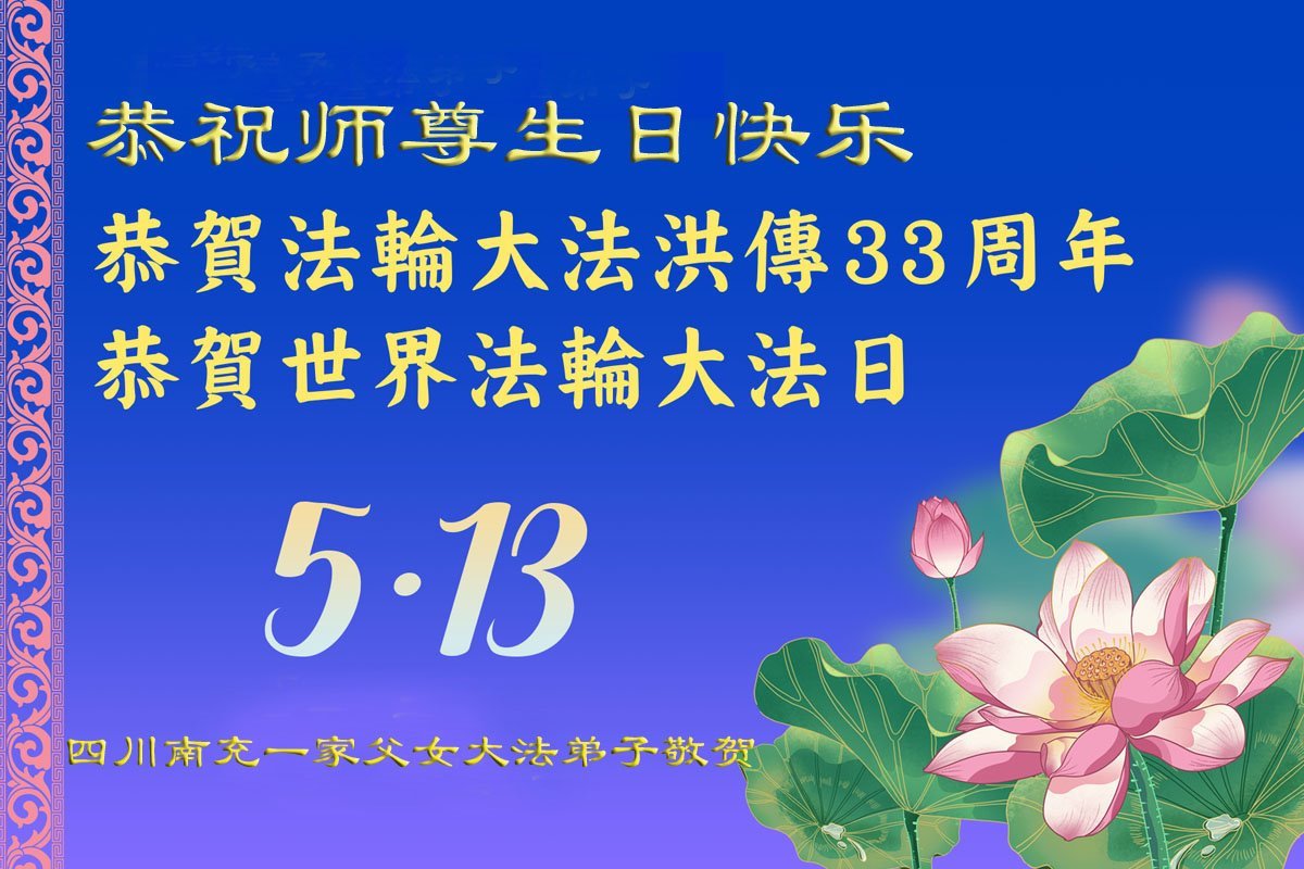 四川南充一家兄弟大法弟子恭賀師尊華誕暨法輪大法日!