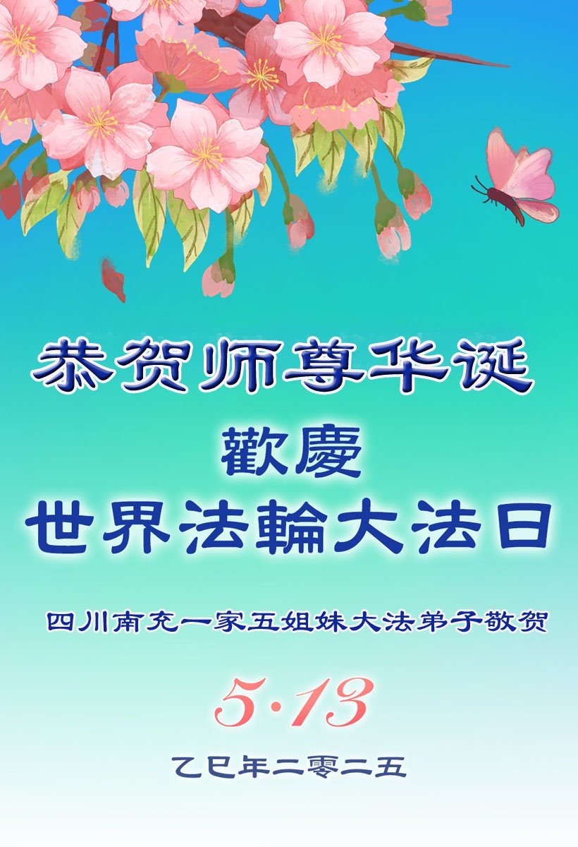四川南充一家五姐妹大法弟子恭賀師尊華誕暨世界法輪大法日!