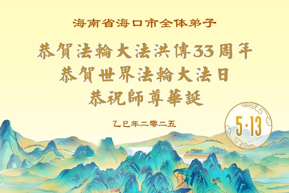 海南省海口市大法弟子恭賀世界法輪大法日!
