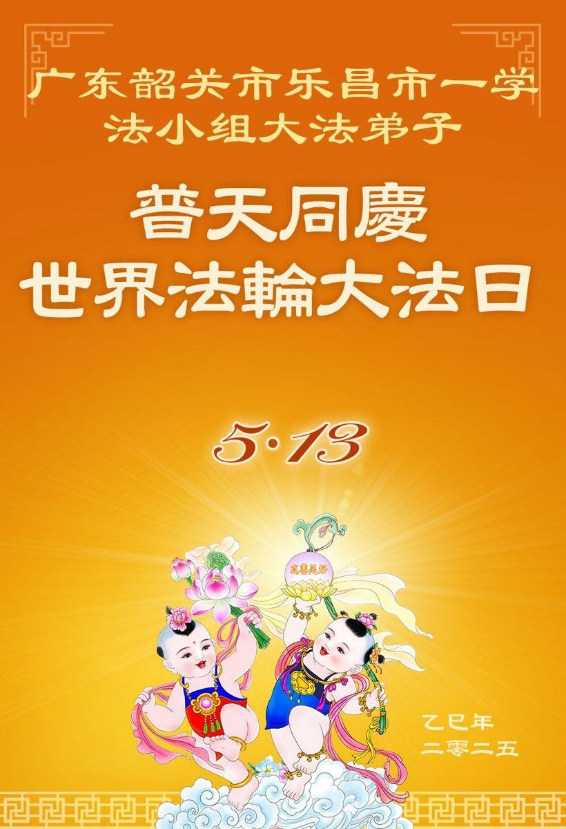 廣東韶關市樂昌市一學法小組大法弟子慶祝世界法輪大法日!恭祝慈悲偉大的師父生日快樂!